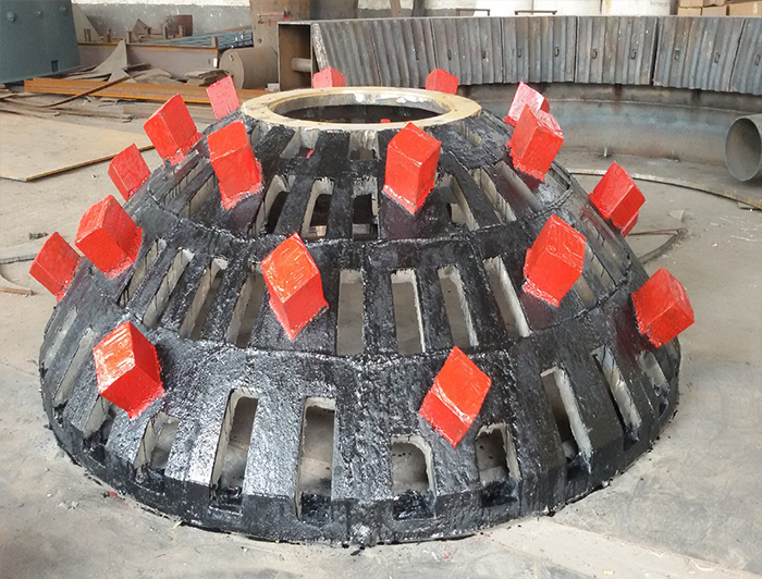 二.采用雙曲面盤塔體形成多級(jí)破碎裝置, 采用改進(jìn)型篦式出料裝置,增強(qiáng)破碎能力,加快卸料速度,使窯內(nèi)底火平穩(wěn)不拉深,落料平衡,燒結(jié)料出料粒度均勻。